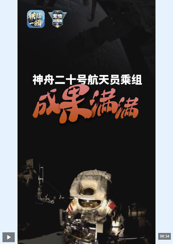 神舟二十号航天员完成了4次舱内、舱外任务,7次舱内、舱外有效载荷任务。他们在空间生命科学、基础微重力物理、空间材料科学等领域开展研究,并取得阶段性成果。他们还培育了空间站的斑马鱼和菜园,使其保持“生机勃勃”。这波太空角色很吸引人!制造商 |冯旭红 王刚 制片人 |李欣 张颖 编辑|陈陈李伟编辑|李超跃记者|李浩